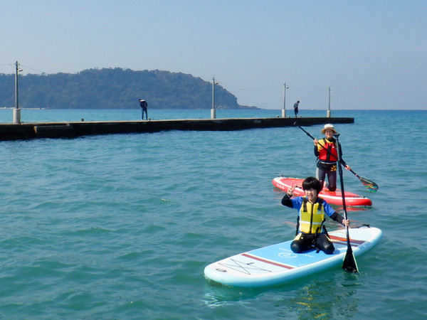 SUP experience next to Okamoto Pier, a popular spot in Minami-Boso, in the clear sea and air, soaking up the sunlight♪.